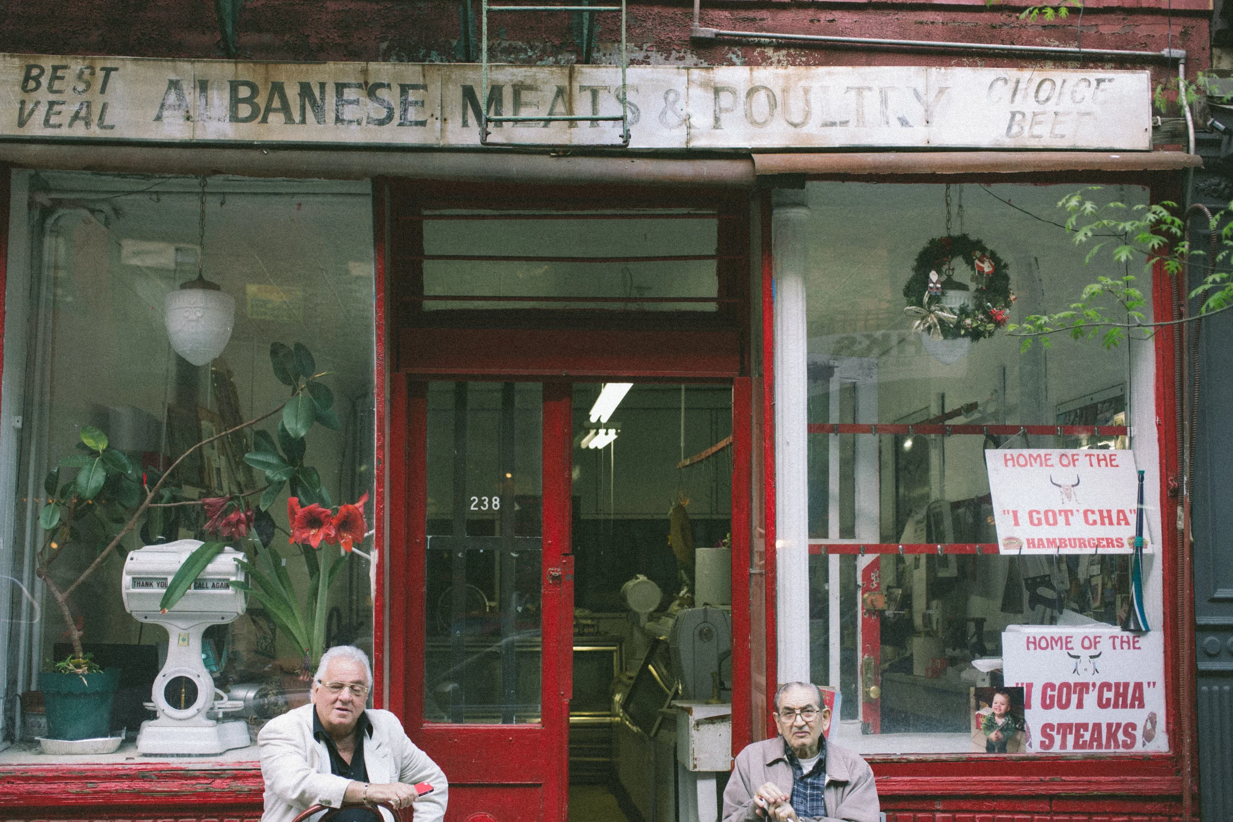 Everyone I talk to here believes they know where the best _______ is. Whether it's a hero sandwich, a bagel, a donut, or slice of pizza, I get a wide variety of answers for each and for different reasons. ("The cake donut is good there, but the jelly filling at Peter Pan's is to die for.") In this city of plenty, restaurants and shops survive off of being really good at one thing, which people continue to come back for. I love asking people where the best [food item] is so that I can watch the passionate debate take off among anyone within earshot. My favorite memory was one I experienced in my first month here. As I was walking through the East Village, I stumbled upon an idyllic New York scene--a man dressed in a fine white linen suit sitting backwards on a chair talking with his friend wearing a newspaper cap outside an old Albanian butcher shop dated over 40 years old (the butcher Momo inside, still actively running the shop, despite approaching 92 years old). I approached the duo, asking to take their picture, and the man in the white suit said, "Sure, and then I'll tell you who I am." The man was named Vinny Vella Sr., and he's best known for his roles in The Sopranos, Coffee & Cigarettes, Analyze This, and more. His voice had a thick New York accent, and he liked to wink in all his photos. I asked for an Italian restaurant suggestion and he offered La Mela in Little Italy. His friend recommended a different place. They went back and forth, interjected with a -- "yeah but have you been here?" Even if the place is mutually agreed upon, what to order is then up for debate. The only thing mutual conclusion they made was that I should come back to Momo's shop -- the one they were sitting outside of -- during his business hours so I could see the long-time butcher in action. I thanked them for their many suggestions, and went on my way. I've learned that in these situations, it's best to just write down all the suggestions made and decide where to go based on location, in case a craving arises. I've been slowly working my way through that list to determine which one is my favorite.