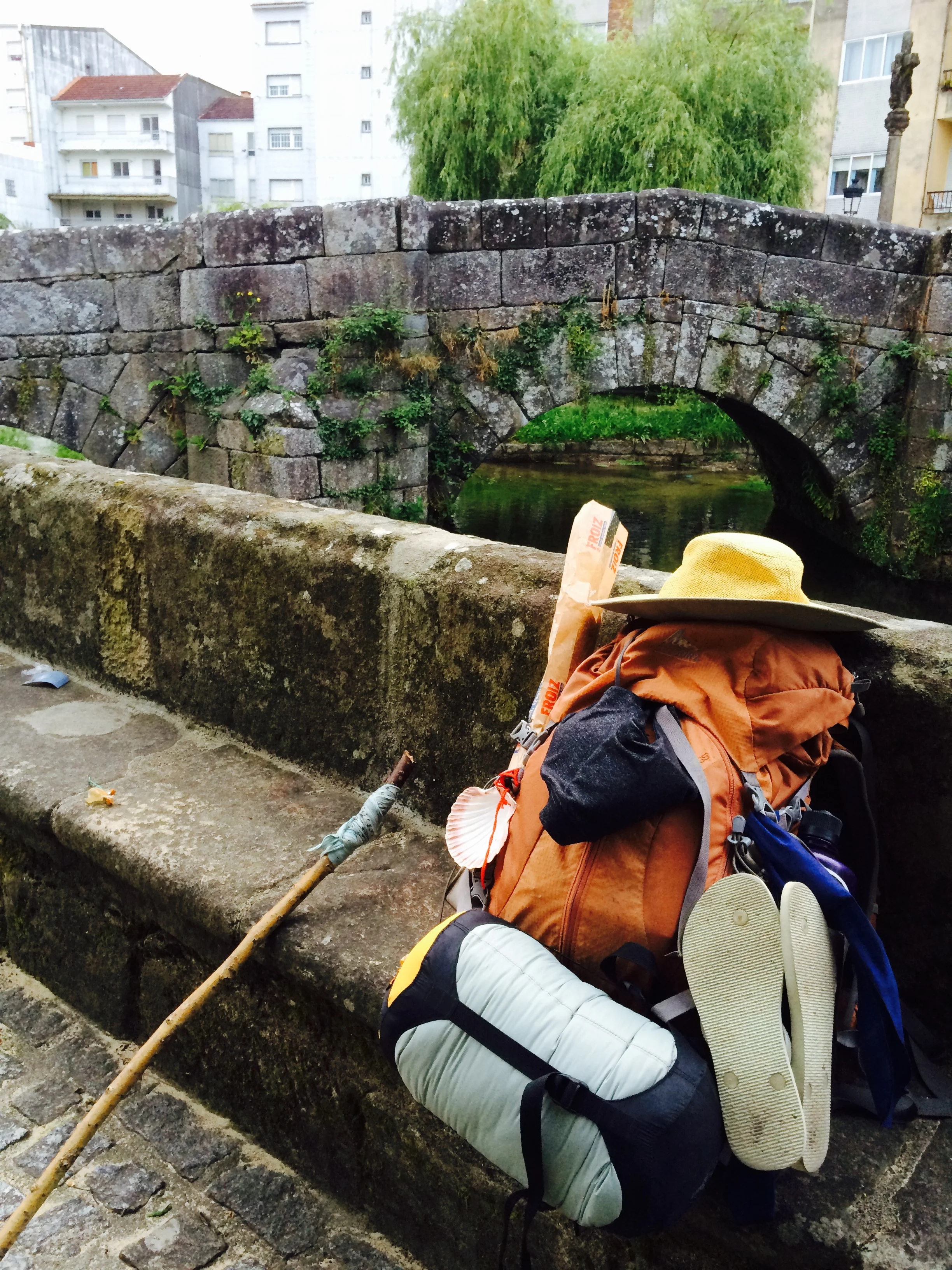 I sit below a small cascade beyond the medieval bridge, on the shore of a lazy river. I've walked somewhere close to 8 miles already. Much of the road has been cobblestone, passing through small towns and farmland. Everyone I greet is friendly and the old ladies call me "Mi niña" (my child).