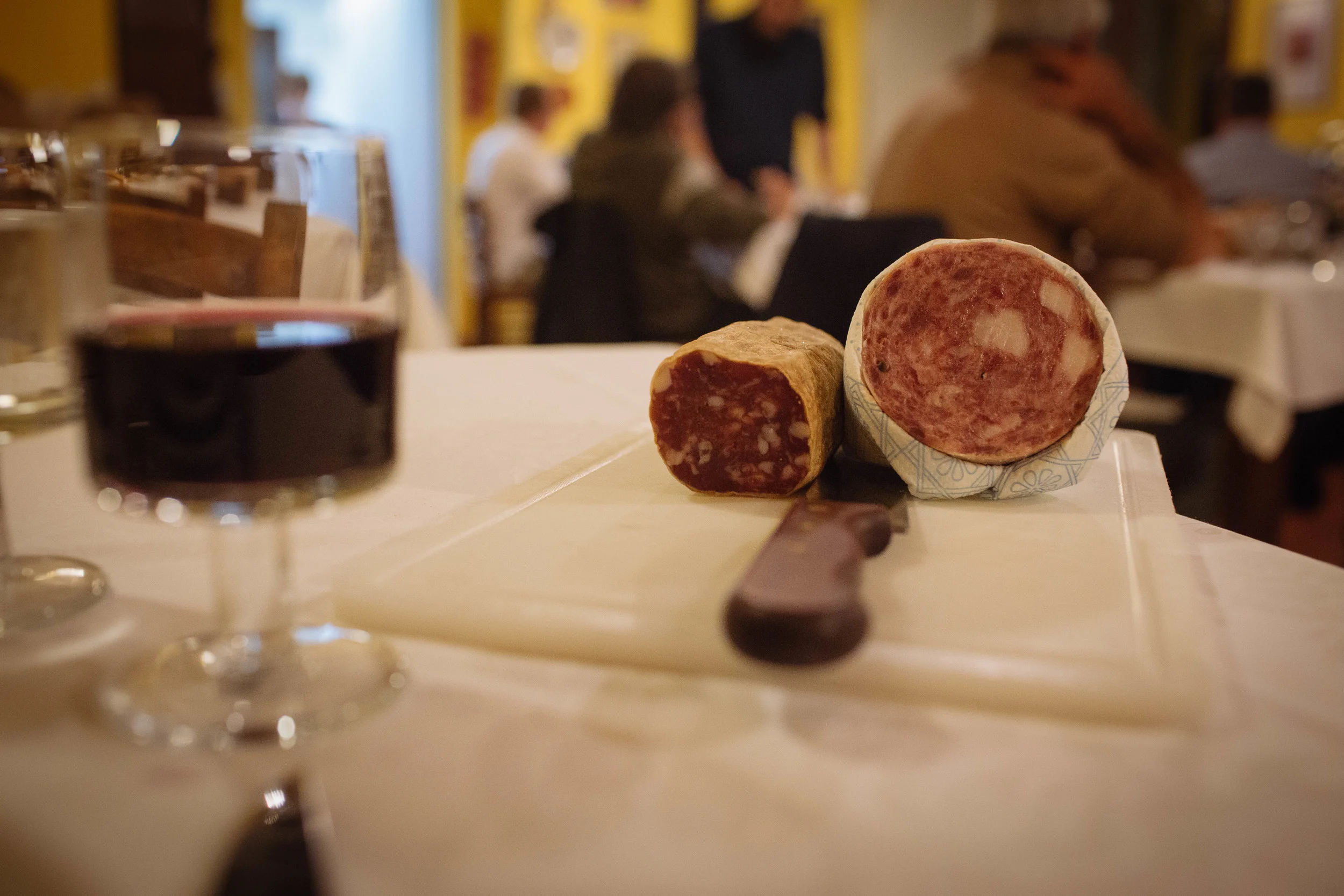 As soon as I sat down, I was greeted with two different salamis, served unapologetically on a plastic cutting board with a chef knife. It is implied, as I looked around unsure of what to do, that you cut off what you wish. After I did, the server passed the plate from table to table. The dinner lasted 3 or 4 hours, including 10 different classic Piemontese dishes of tajarin, pin, and Russian salad. The tartare di fassone was the best I had anywhere, and I just wished for a bigger stomach to finish everything.