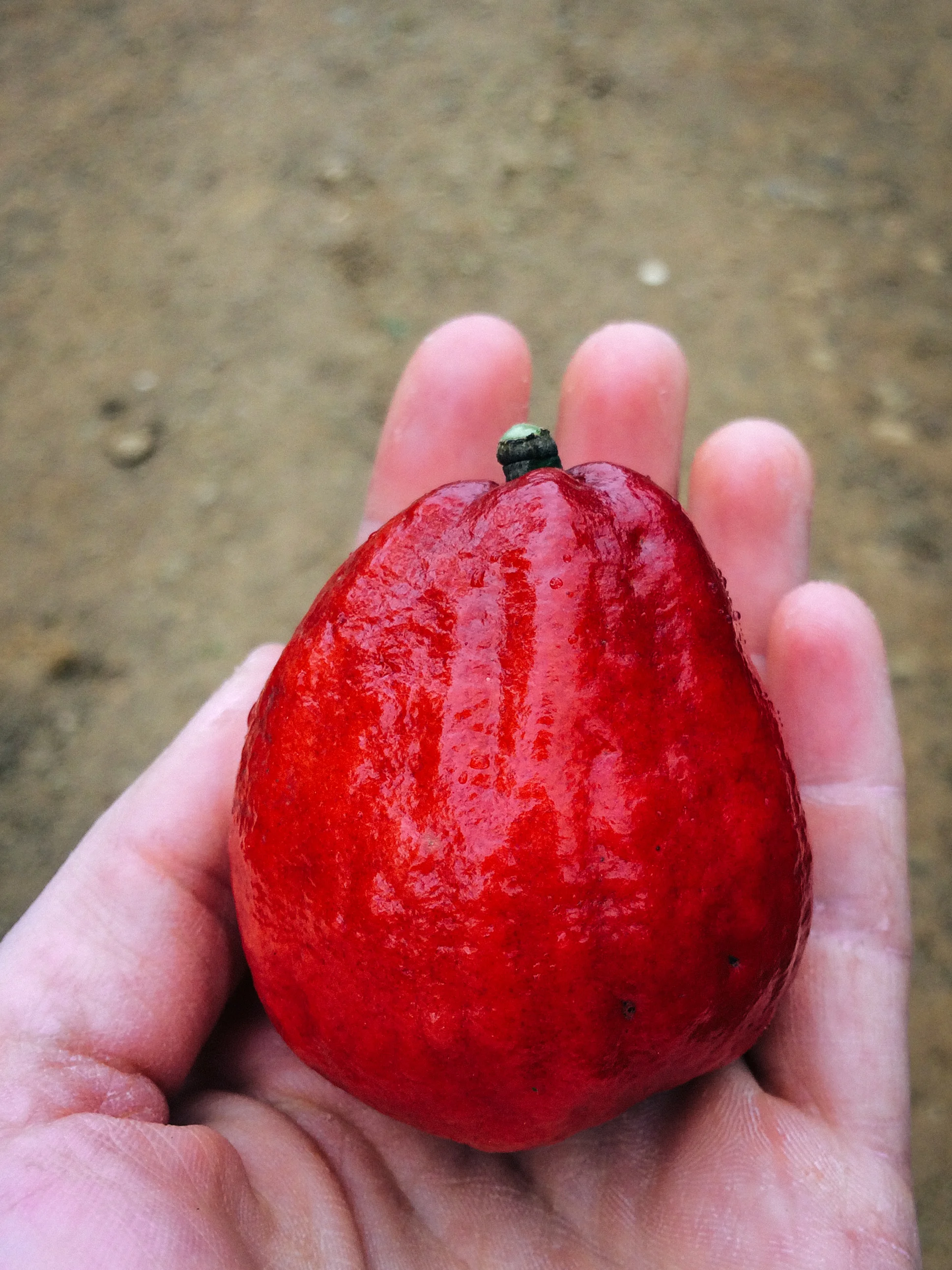 Backtrack a few days ago before the trip started. We were walking along a dusty trail leading to a picturesque waterfall—the kind you swim under and send the picture as a postcard—when we crossed paths with a toothless farmer wearing barely-held up pants, muddy rubber boots, and a faded t-shirt. His creole was too thick to comprehend by my unpracticed white-American ears. Without prompt from us, he motioned to follow him deeper into the jungle. While many might hesitate before following an indecipherable stranger holding a machete, we nonetheless accepted his invitation, which took us to a tree hanging with ripe hibiscus-colored baseball-size fruits. I relished in the exotic taste of these tropical fruits as I ate the two, then five fruits passed my way. The skin was waxy and crisp like a pear with a white juicy interior that softened as I bit into it. Its delicate rose-like smell wafted around us in the shade of its tree. I later discovered its many names as I wandered Grenada’s Saturday market—French cashew, plumrose, Malay apple, rose apple, and others. Our fruit farmer, who had invited us to share in the plenty of his personal French cashew tree, planted a stone’s throw from his one room home, filled our backpacks to the brim. The fruit acted as a wordless welcome to these Spice Isles, filled with smells and tastes I would soon joyfully discover and pass on to my guests. The next day, I displayed his beautiful fruits in a white bowl at the entrance to the boat—an invitation to our guests as they boarded their vessel and home for the week.