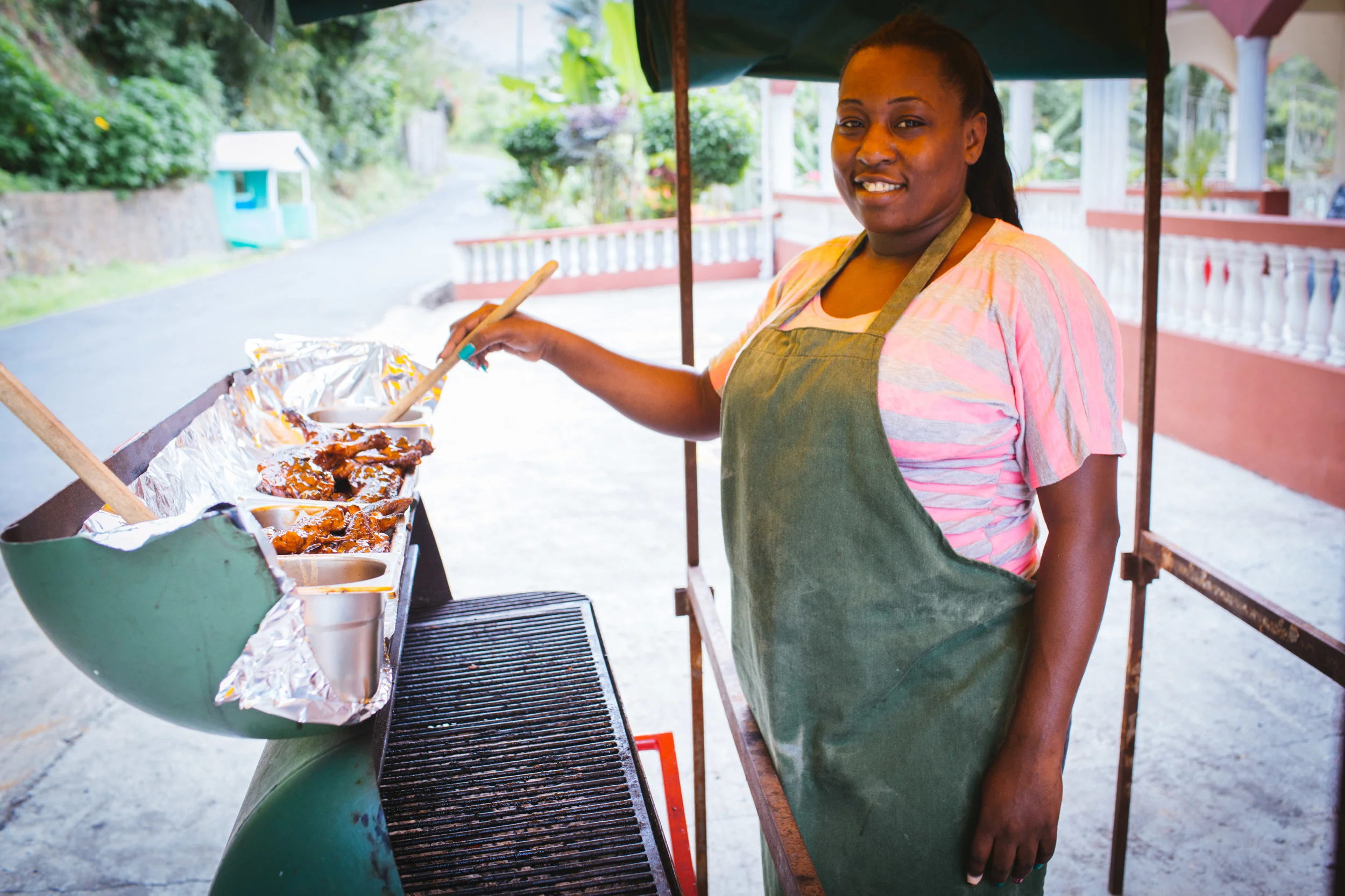 At a stop in the interior hills of Grenada a young woman grilling in her repurposed oil drum told me that the secret to her family’s remarkably succulent chicken barbecue was that after they boil the chicken (before grilling it), they add the leftover water and a case of Carib beer to the sauce. Her family, in concert with the many others, dragged their makeshift barbecue to the street every Friday, turned on the reggae, and greeted friends and family with fresh juice or local rum as they informally passed through, eating whatever was cooking or just catching up. It was an open invitation.