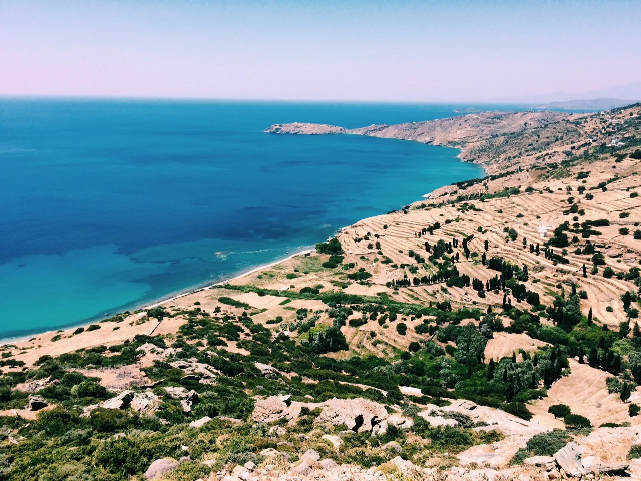 Equally emblazoned in my mind were the colorful hues of Greece. It is a country of blue—from the brightly painted blue shuttered houses, to the sapphire blue water, the dusty evening sky, and the distant peaks that jut out from the horizon. The fluoride-white houses illuminated the sage green olive trees and the camel-colored wheat fields that terraced into the ocean below.