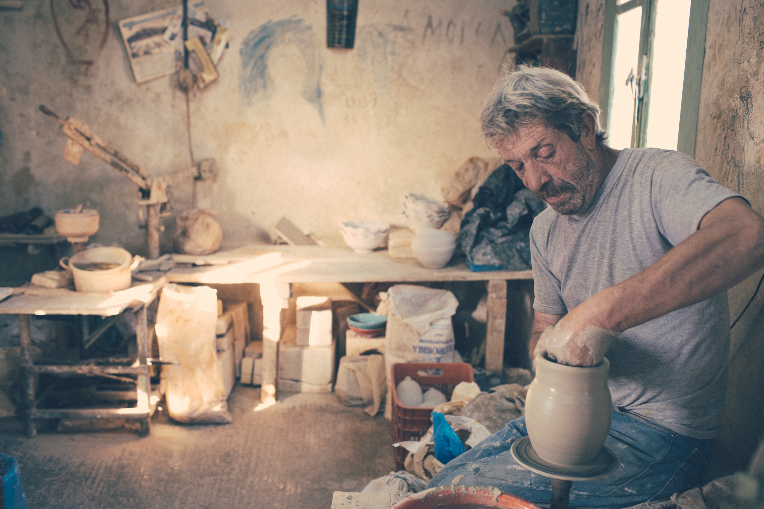 From artifact to architecture, history in Greece is woven into its surroundings. Tucked into Aegina island is the small town of Messagros, where a famous potter--the last of his kind--still practices an ancient style of pottery. Nektarios Garis, who carries on the traditions of his ancestors, still collects clay from claybeds around the island and fires his pottery in a wood-fired kiln fueled by fallen pine branches from around his home. On Andros, a beautiful little island in the north of the Cyclades (that is uniquely devoid of the common Greek crowd of tourists), old hand-stacked rock walls parcel out land along the steep cliffs. They seemed unused in current day, and more stand as a memory of ancient civilizations that date back further than I can even imagine. There is a similar feeling of awe, both from afar and close up, as you enter the ruins of the "Sacred Triangle" -- the Acropolis, the Temple of Poseidon, and the Temple of Aphaia--all of which were built by the early Minoan people (early Greek settlers) in the 5th century BC.