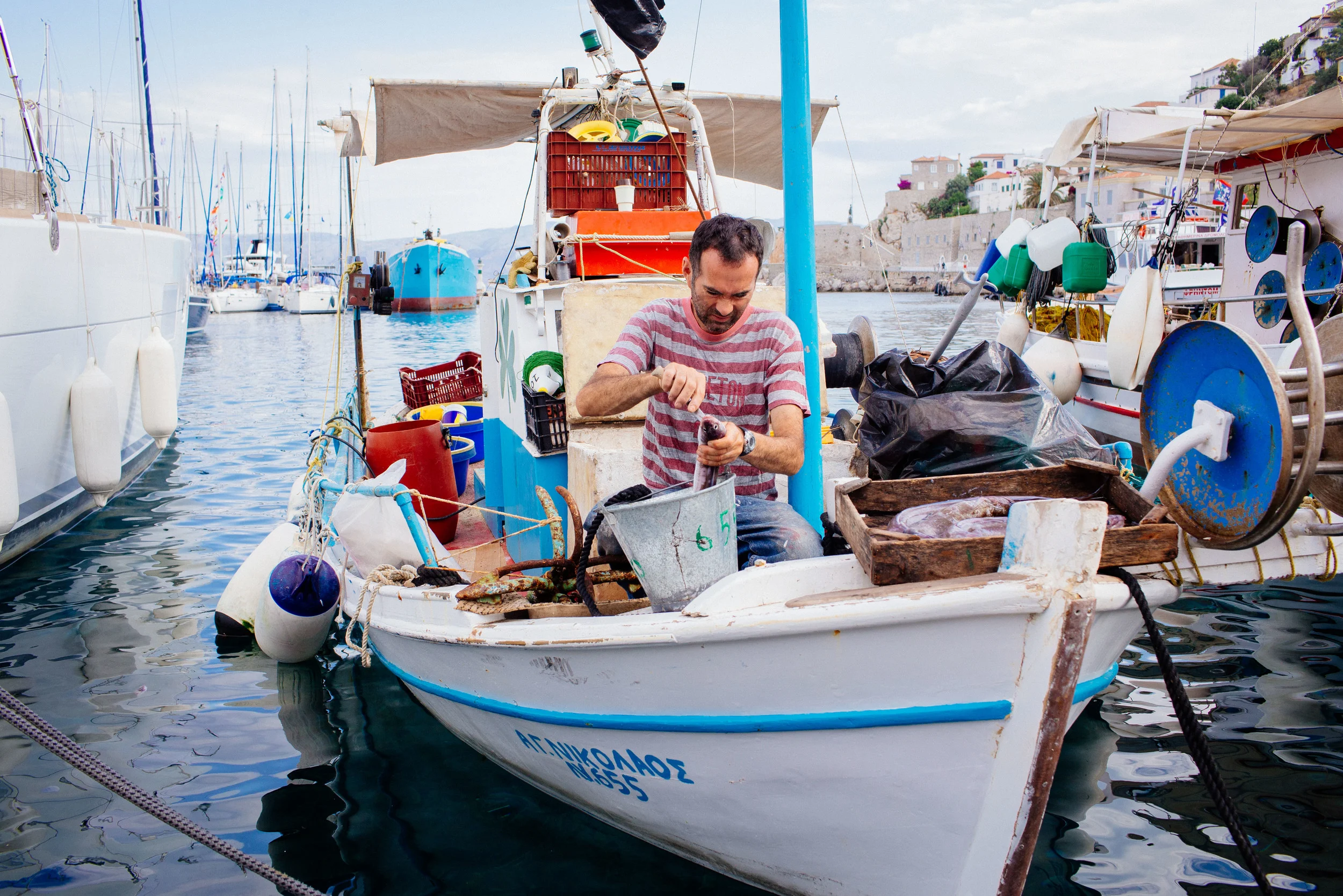 It seemed there were three main simple joys to life in the Greek islands: family, religion, and fish (nearly every inlet, hill, and island had a small one-room church on it). Fishing was a hobby and a profession. One taxi driver told me that his retirement plan was to fish everyday. Fisherman enter the ports in the morning on islands like Hydra, selling fish directly out of their iceboxes to locals (and throwing the scraps to the eager harem of cats awaiting their turn). Men and children idly walked the docks at night with a small cooler and a hand-reeled hook, waiting for the night squid to reveal themselves.