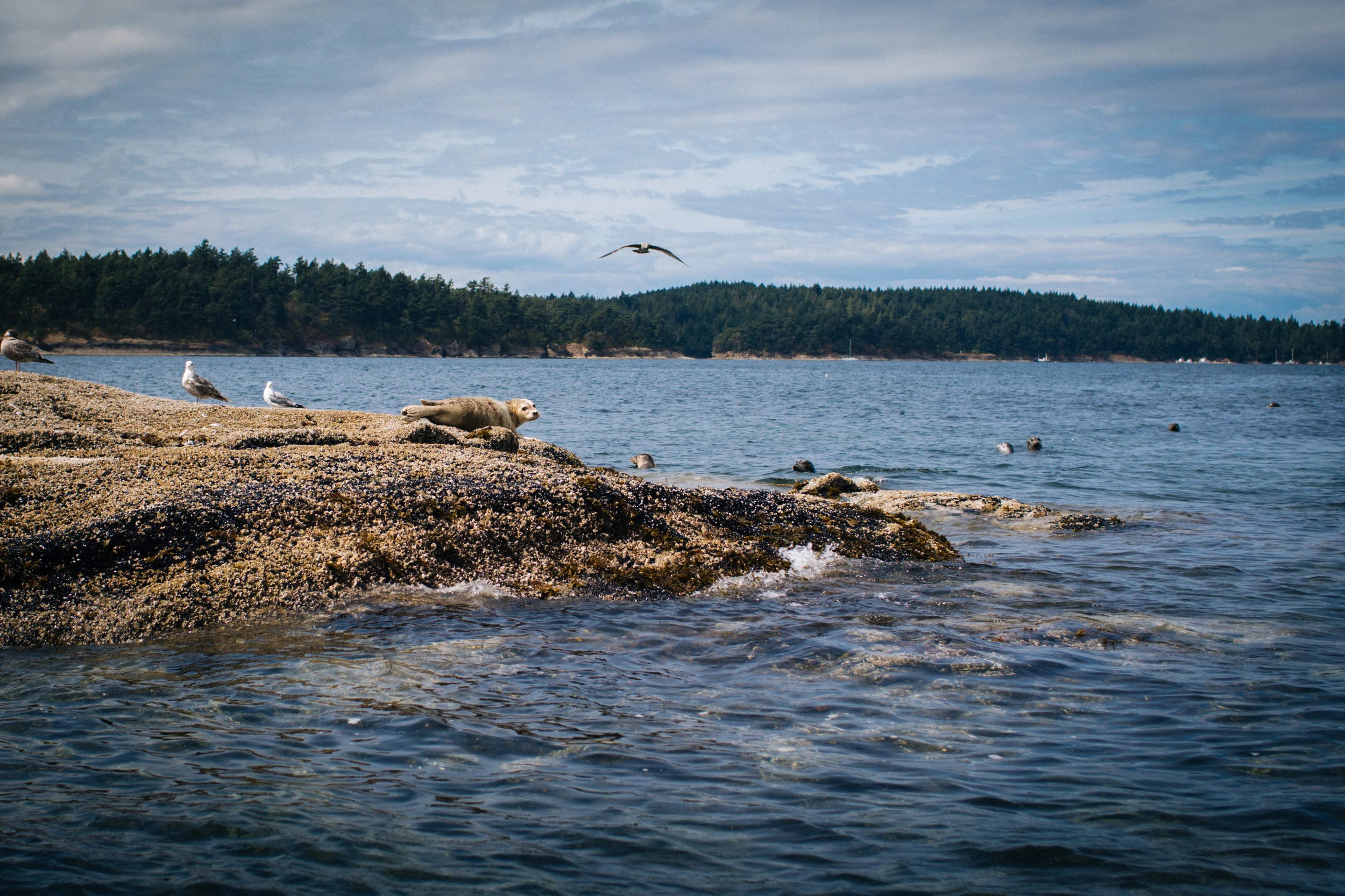 Stretching to the last nautical mile of the Northwest United States border, the San Juan Islands archipelago consists of 128 named islands — plus an additional 400 smaller unnamed islands which serve as platforms for colonies of seals and flocks of birds. Although ensconced in the marine backyard of Seattle, few Seattleites have navigated the more isolated islands that the ferries do not reach. The complex tidal range of this area that is responsible for producing such a lush variety of aquatic wildlife also creates its notoriously strong currents. These currents can reach up to 8 knots in certain areas—enough to stop a sailboat our size from propelling forward if incorrectly timed to the tidal cycle—a deterrence for many less advanced boaters and sailors.