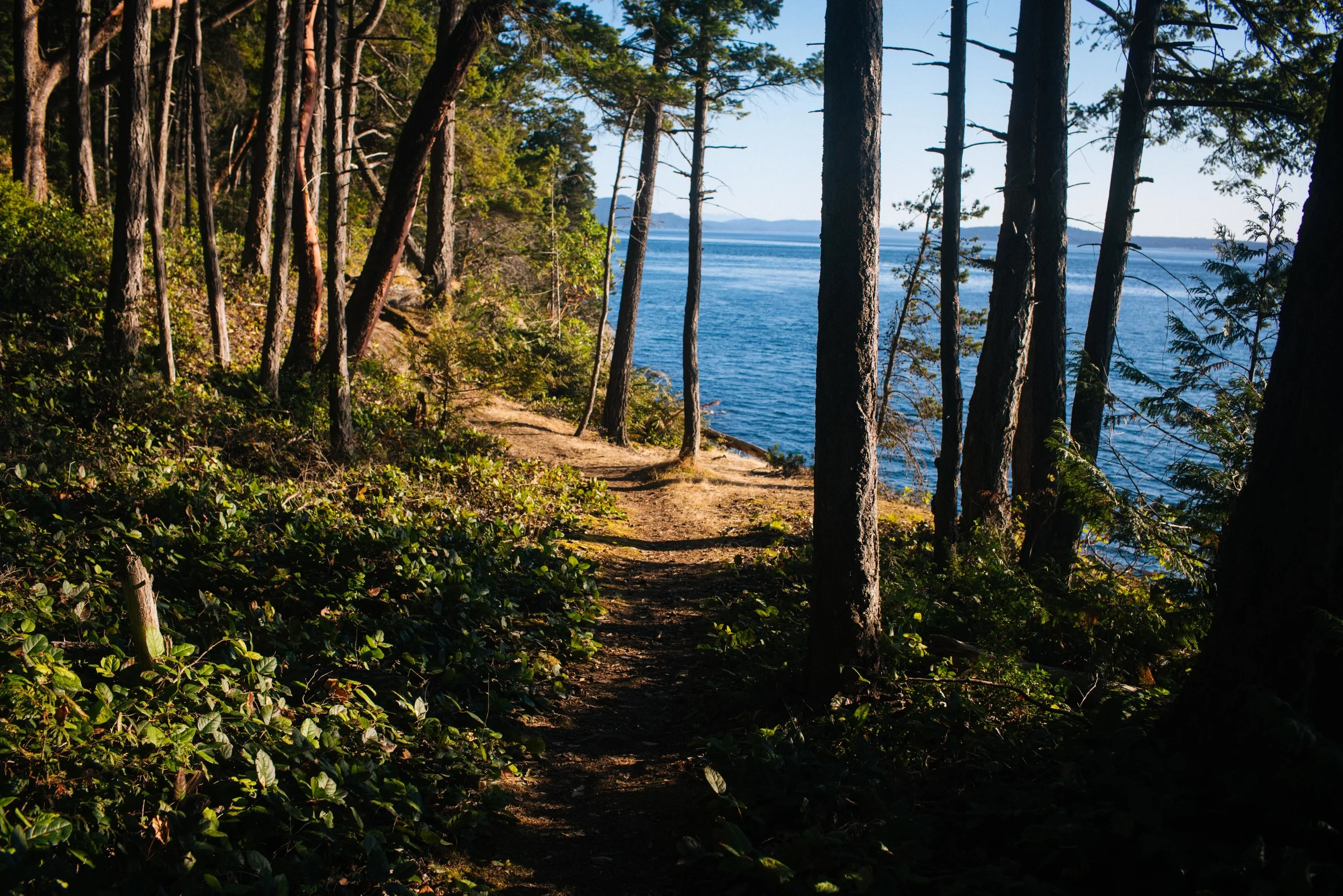 We drifted quietly through narrow inlets, past the skeletons of trees topped with bald eagles. We rode the tides across the straits. We sat in the soft sand. We wove through forests of Madronas that stretched out from the perimeters of the islands. We crawled across the wind-cratered sandstone rocks. We clinked ruby glasses of wine to a brilliant sunset. We swung on an abandoned, lopsided wooden swing on our hike through Stuart Island. We peacefully read books on the bow. We polar-bear plunged off the stern. We watched blue herons glide silently over the water at dusk. Occasionally the nose of a seal popped up on our stern, following us like a curious dog. We strolled silently under the filtered sunlight of old-growth forests awash in moss green and blankets of ferns. At night, we scrubbed our dishes in the ocean to see our forks turn to wands creating bubbles of bioluminescence.